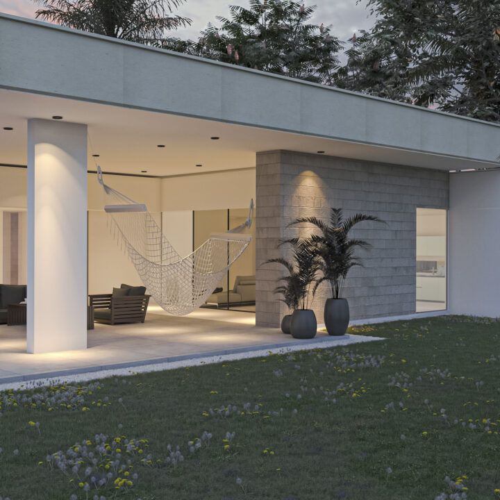 Comenzando por la fachada, nuestro enfoque fue crear una apariencia exterior que transmitiera una sensación de calma y serenidad desde el primer vistazo. Optamos por líneas limpias y una paleta de colores neutros que enfatizan la arquitectura moderna de la casa, mientras que los elementos de paisajismo cuidadosamente seleccionados agregan un toque de naturaleza sin distracciones innecesarias.