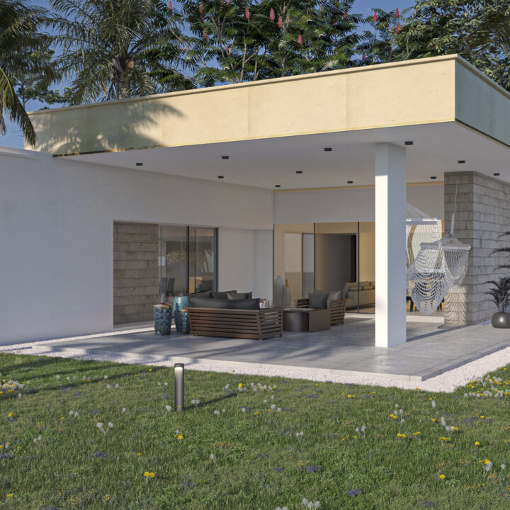 Al ingresar a la casa, te recibirá un espacio interior que respira claridad y orden. Nuestro diseño minimalista se basa en la premisa de «menos es más», donde la ausencia de adornos superfluos permite que la belleza de los materiales y la simplicidad de las formas hablen por sí mismas. Las paredes blancas actúan como lienzo para resaltar la pureza de las líneas arquitectónicas, mientras que los pisos de madera natural agregan calidez y textura al ambiente.