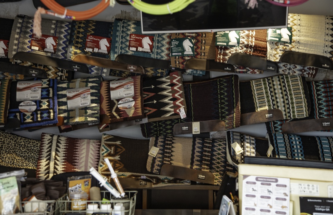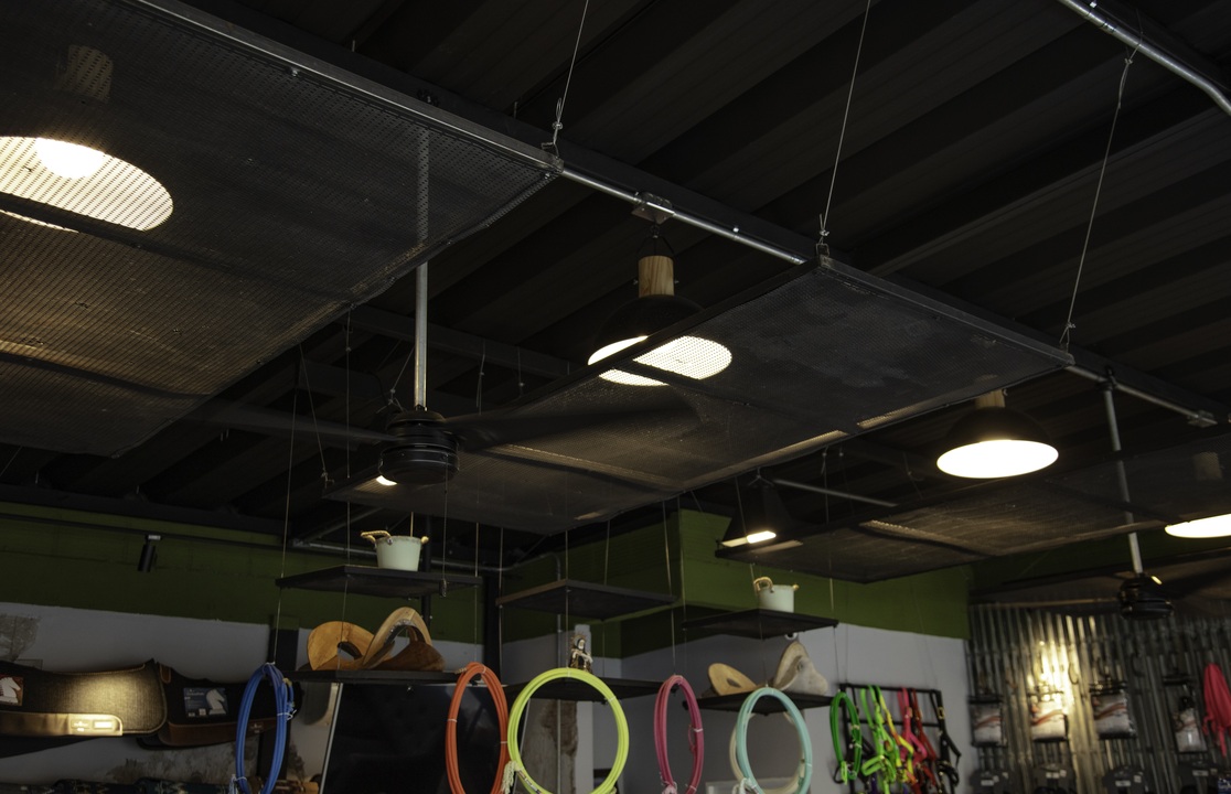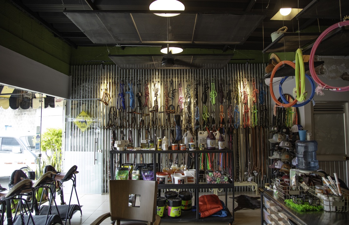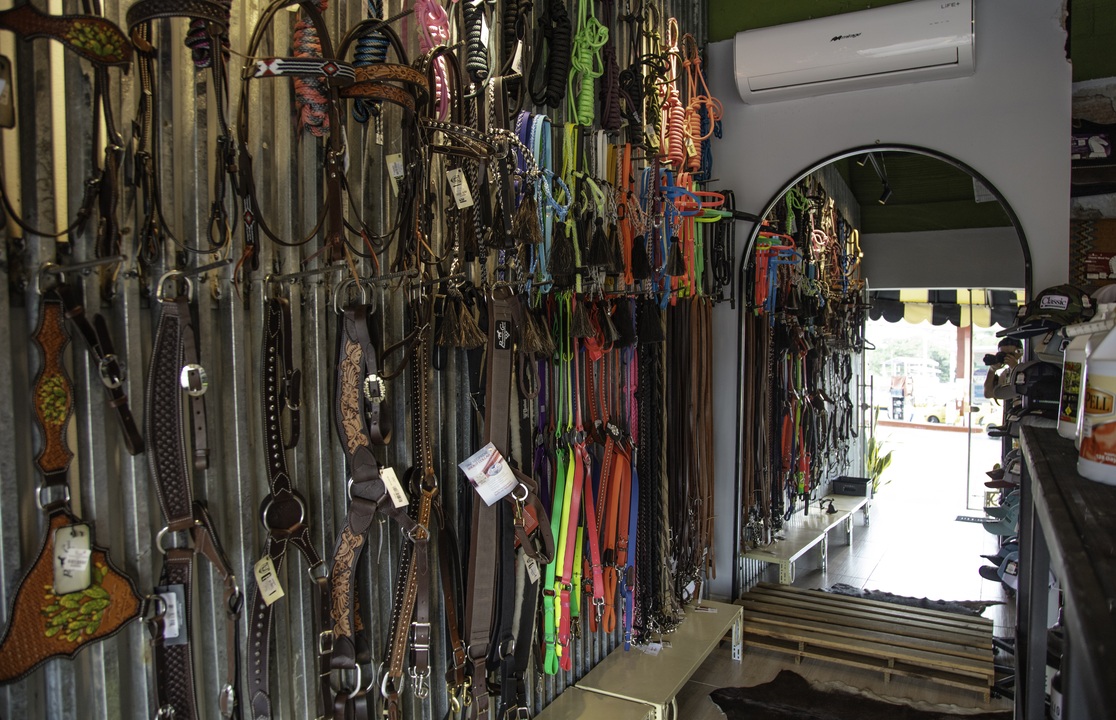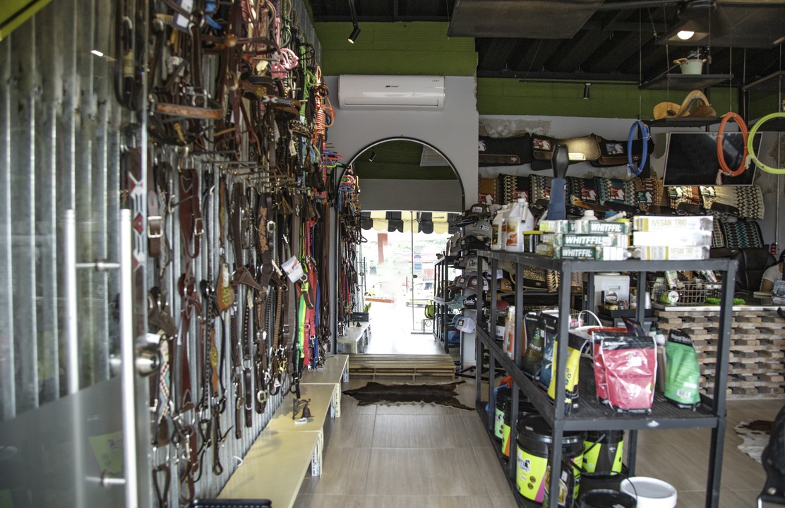 La atmósfera interior combina lo rústico e industrial: techos altos, estructuras metálicas expuestas, pisos en concreto pulido y detalles en madera natural, todo articulado con una iluminación cálida que resalta texturas y volúmenes. Los espacios fueron organizados para albergar áreas de venta de implementos ecuestres, accesorios ganaderos y zonas de reunión, integrando funcionalidad y carácter temático en un mismo lugar.