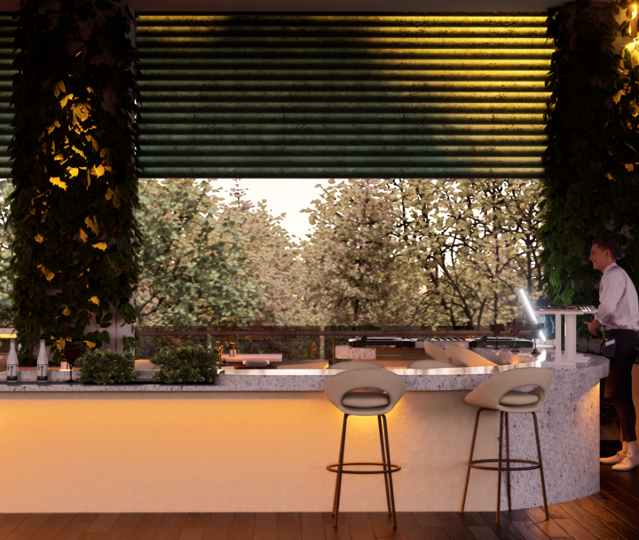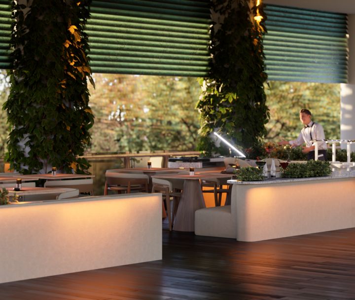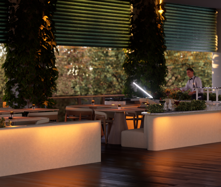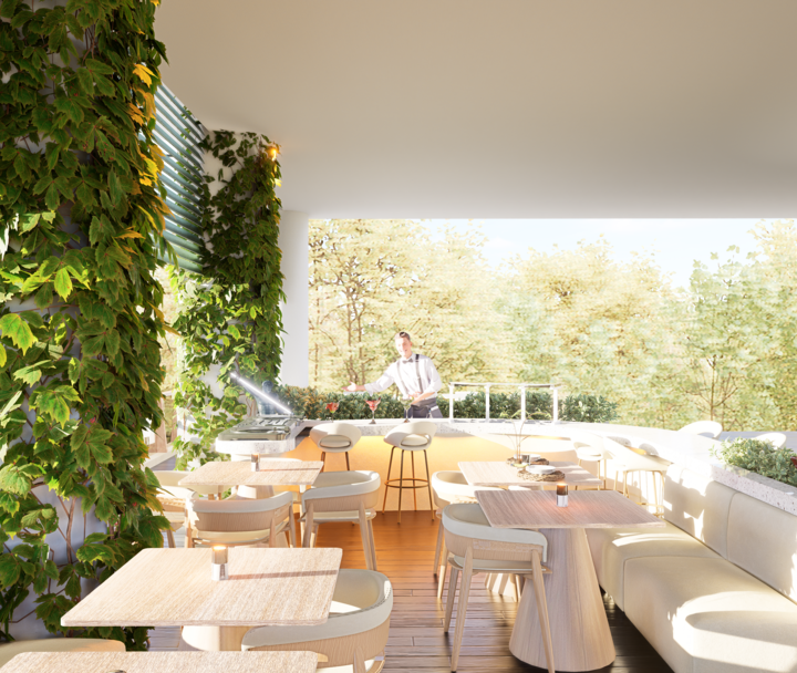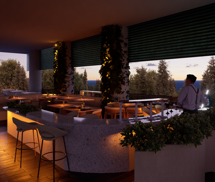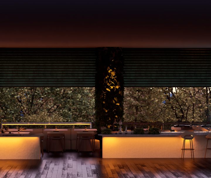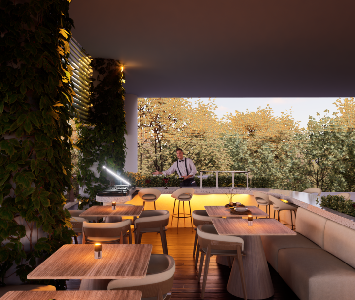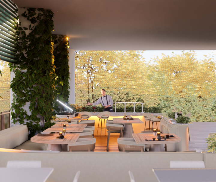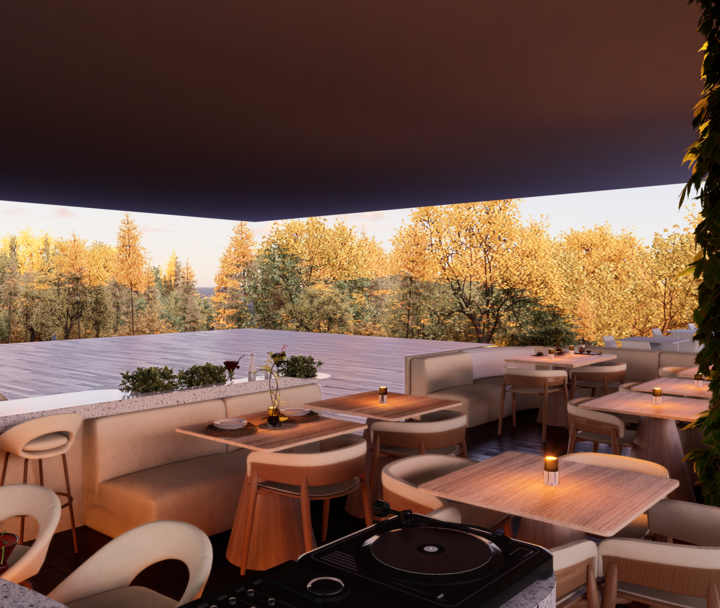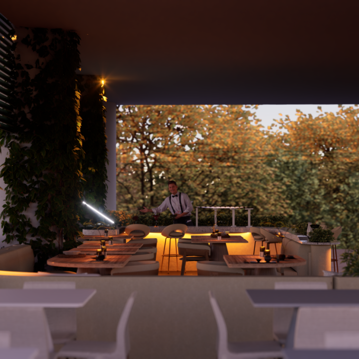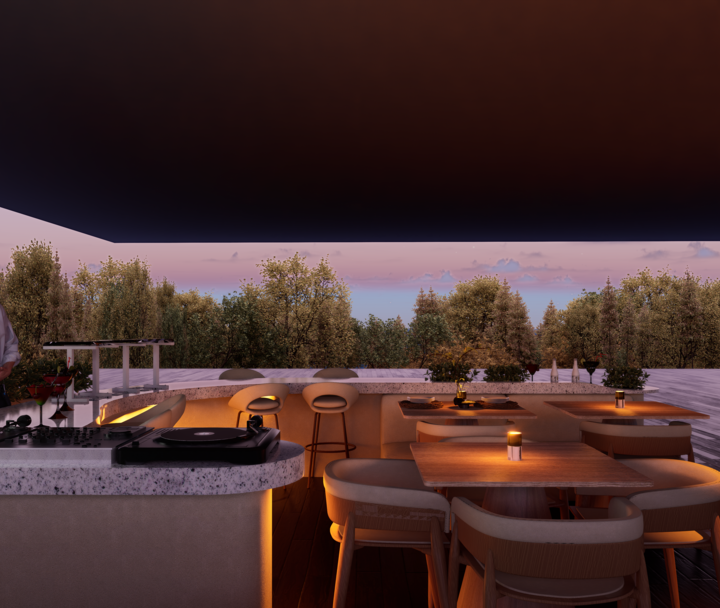 El proyecto Terraza nace con la intención de crear un espacio social contemporáneo, en el que convergen la gastronomía, la música y el diseño, dentro de un ambiente que dialoga con el clima cálido tropical. Concebido como un punto de encuentro, el espacio combina la frescura de la vegetación, la calidez de los materiales naturales y la fuerza de la geometría arquitectónica minimalista.