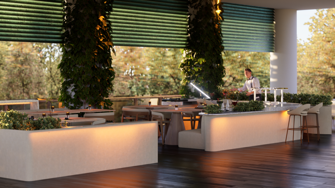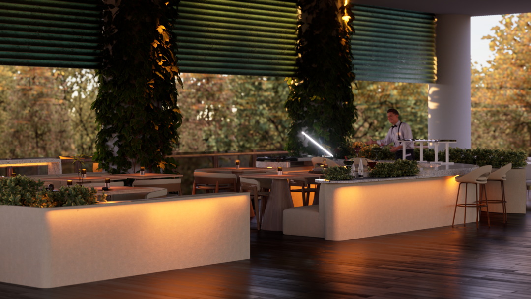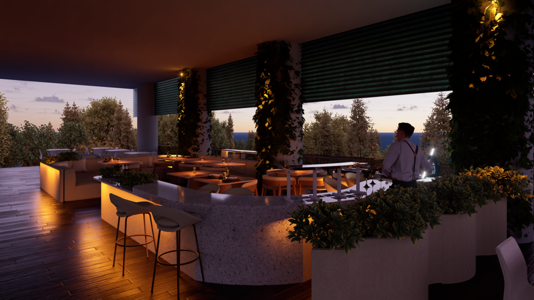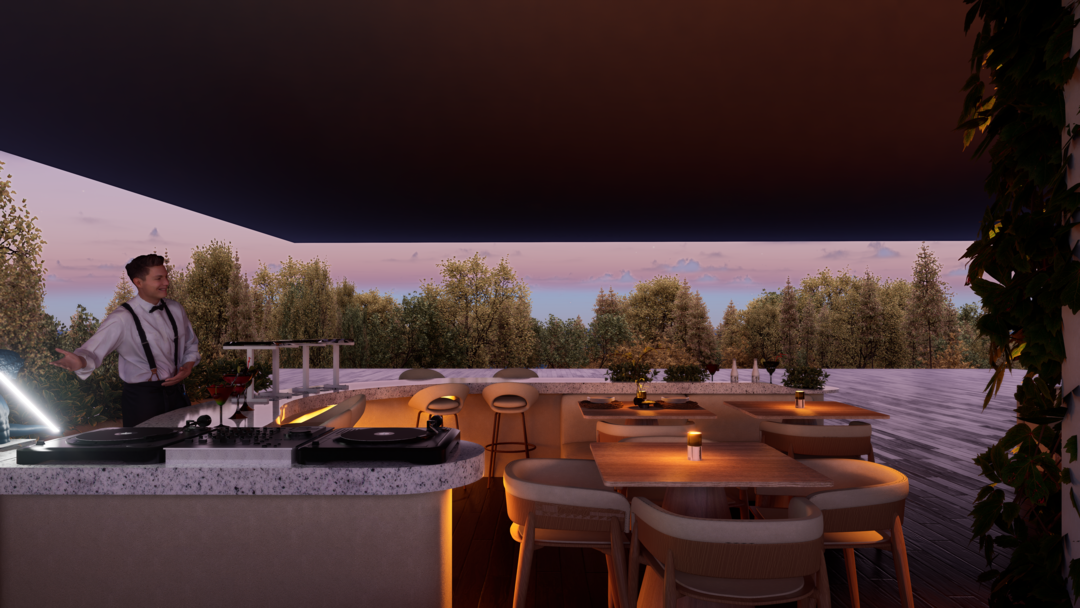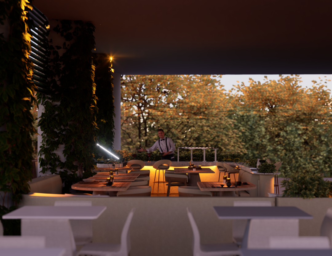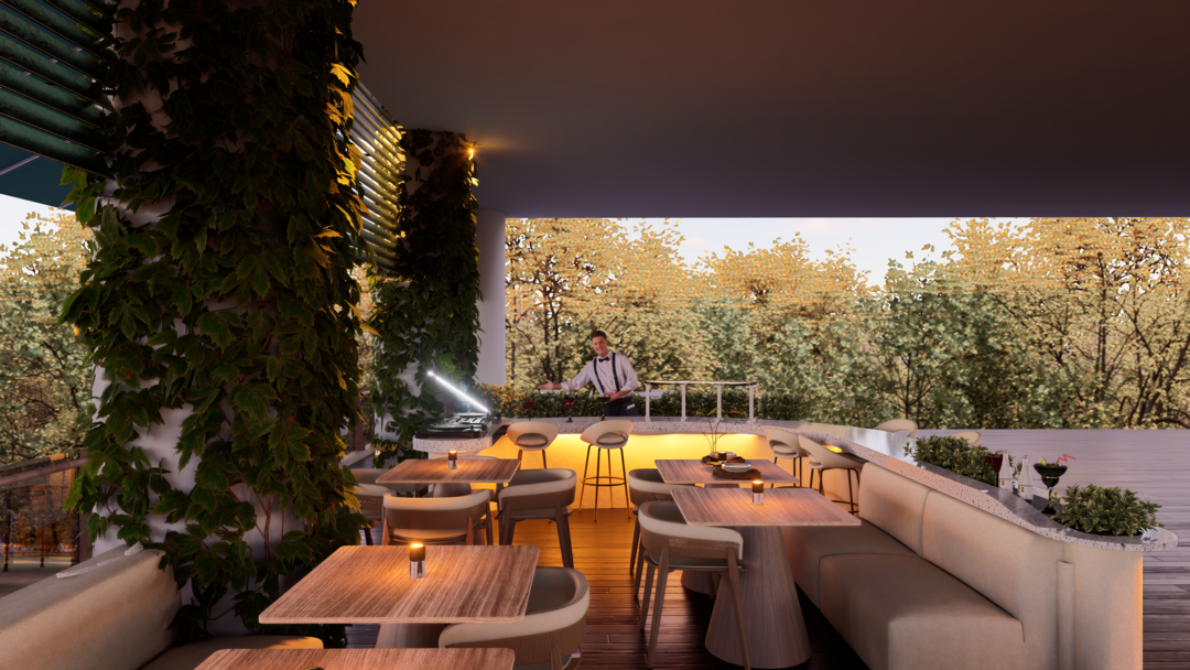 El proyecto Terraza nace con la intención de crear un espacio social contemporáneo, en el que convergen la gastronomía, la música y el diseño, dentro de un ambiente que dialoga con el clima cálido tropical. Concebido como un punto de encuentro, el espacio combina la frescura de la vegetación, la calidez de los materiales naturales y la fuerza de la geometría arquitectónica minimalista.