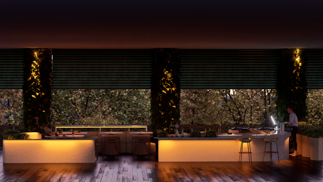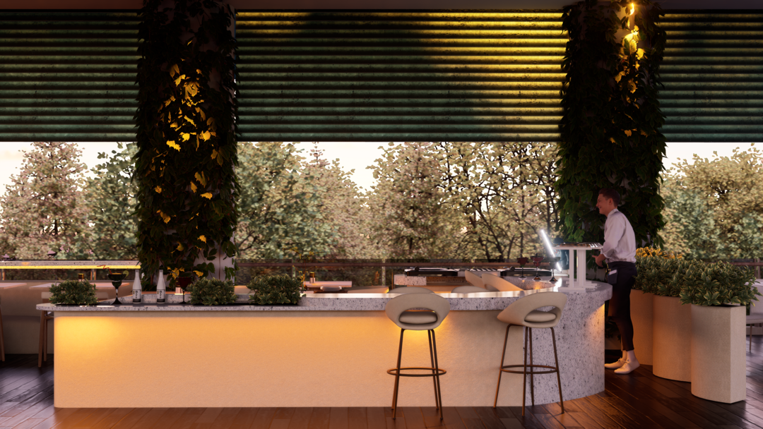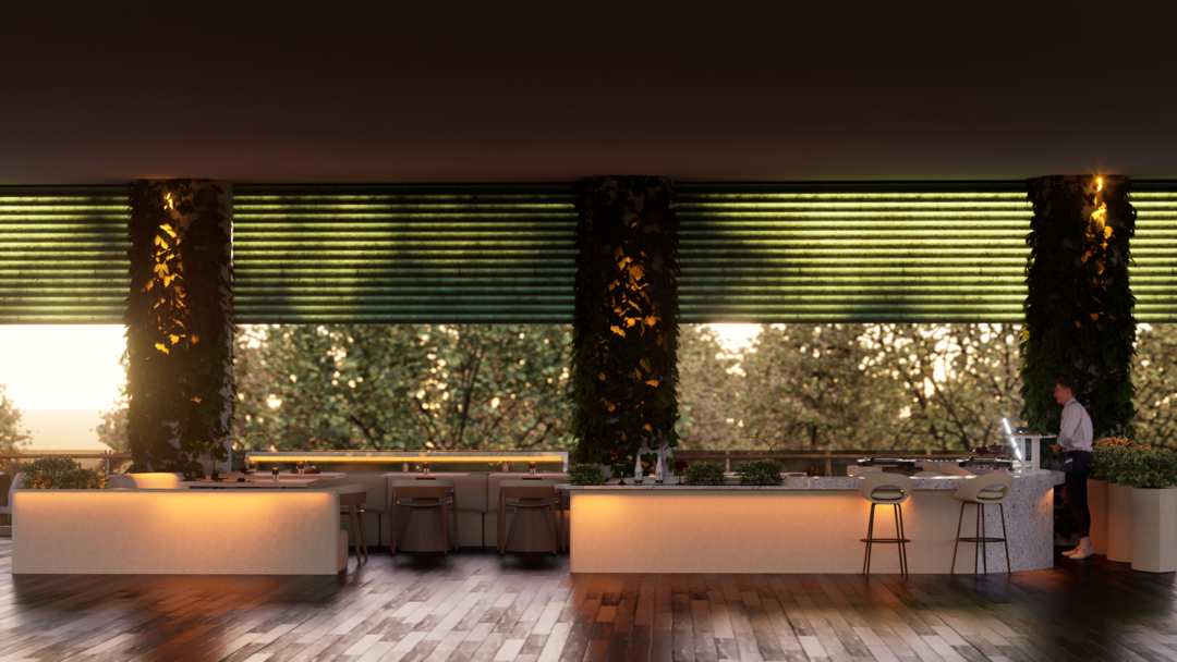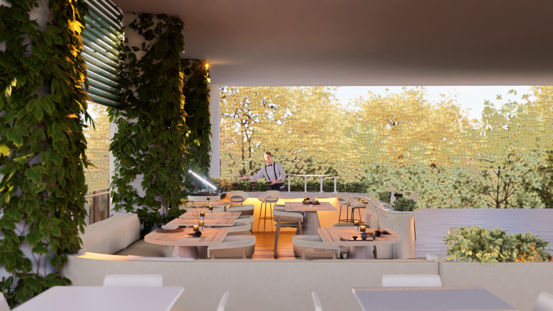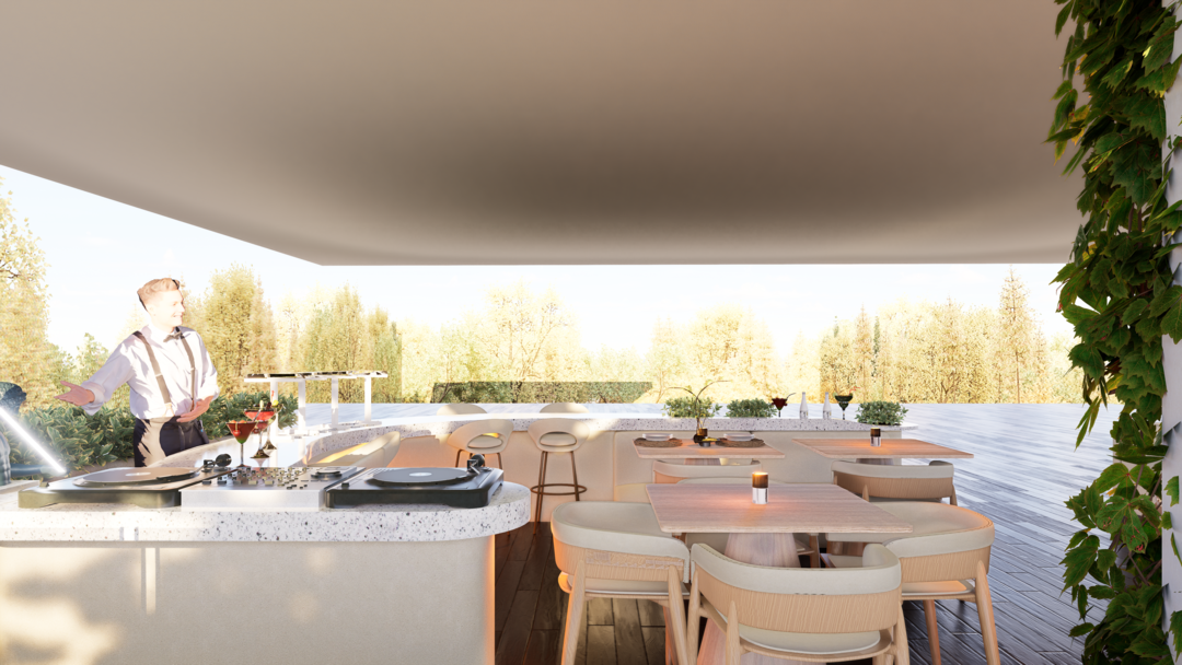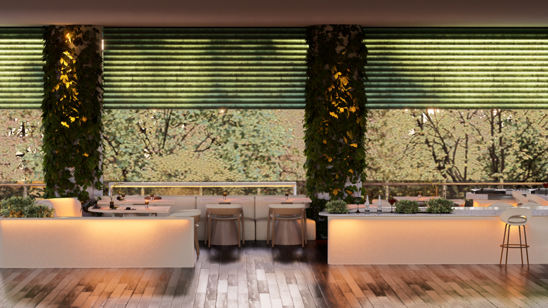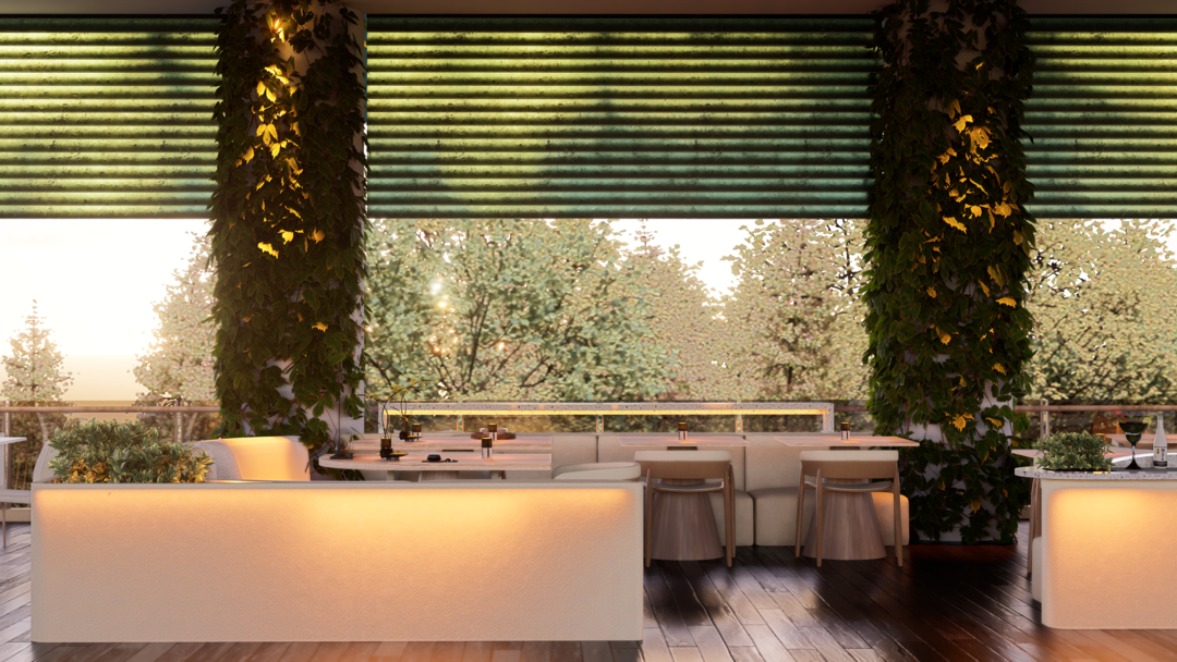 El proyecto Terraza nace con la intención de crear un espacio social contemporáneo, en el que convergen la gastronomía, la música y el diseño, dentro de un ambiente que dialoga con el clima cálido tropical. Concebido como un punto de encuentro, el espacio combina la frescura de la vegetación, la calidez de los materiales naturales y la fuerza de la geometría arquitectónica minimalista.